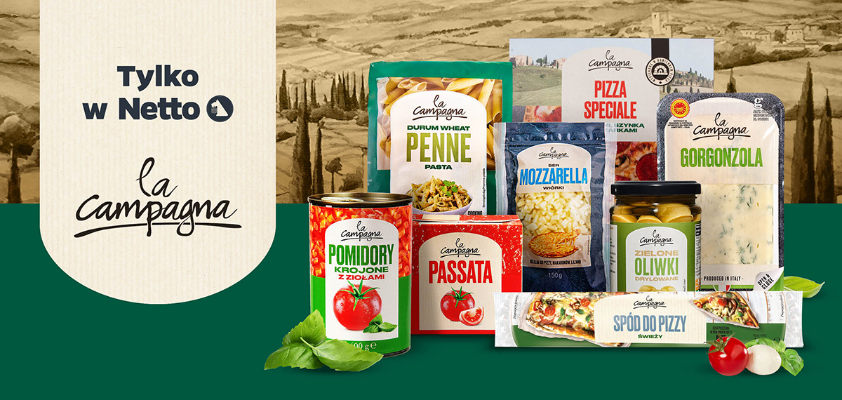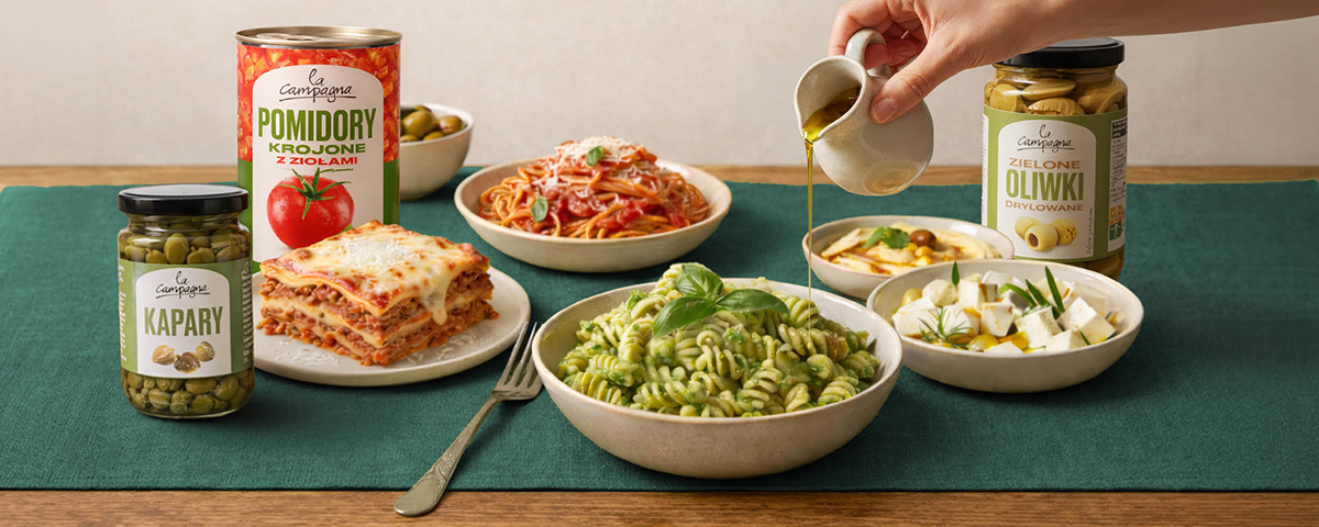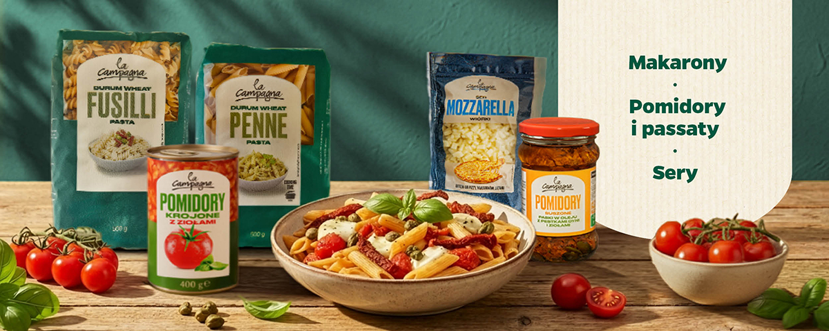 Co przychodzi Ci do głowy, gdy myślisz o kuchni pełnej aromatów, świeżości i prostych składników? Może to aromat ziołowej passaty duszącej się powoli na kuchence, może gładkie w dotyku ciasto do pizzy, które po upieczeniu staje się chrupiącą pizzą z mozzarellą i sosem pomidorowym. Właśnie takie skojarzenia budzi marka La Campagna - nasza własna odpowiedź na potrzeby miłośników intensywnego i prostego smaku.