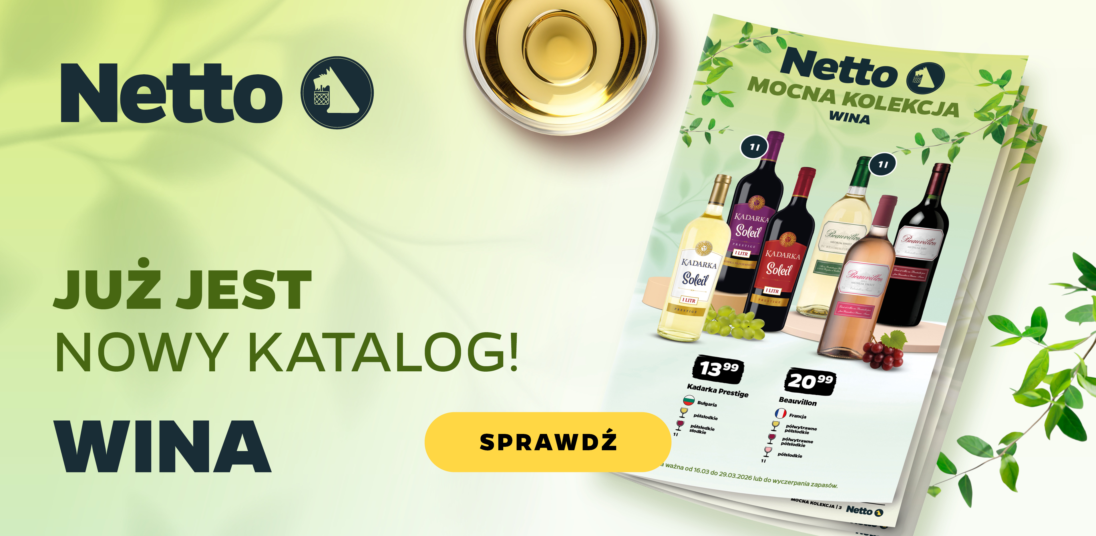 Dobre wino nie musi być drogie ani trudno dostępne. W Netto znajdziesz szeroki wybór win z różnych krajów - od popularnych włoskich, francuskich lub hiszpańskich po ciekawe propozycje z Chile, Mołdawii czy Gruzji. Są tu zarówno klasyki, jak i mniej oczywiste smaki.