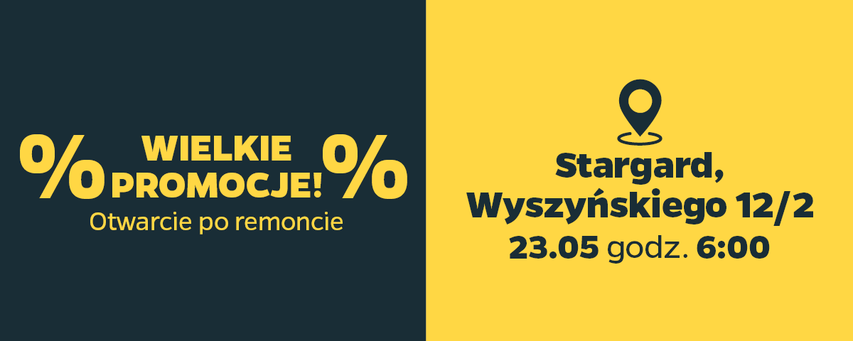 Netto przy ul. Wyszyńskiego 12/2 w Stargardzie wraca po remoncie – zapraszamy na ponowne otwarcie już 23 maja o godzinie 6:00. Zmieniliśmy się dla Was: nowa aranżacja wnętrza, większy komfort zakupów i jeszcze lepsze warunki do codziennych sprawunków.