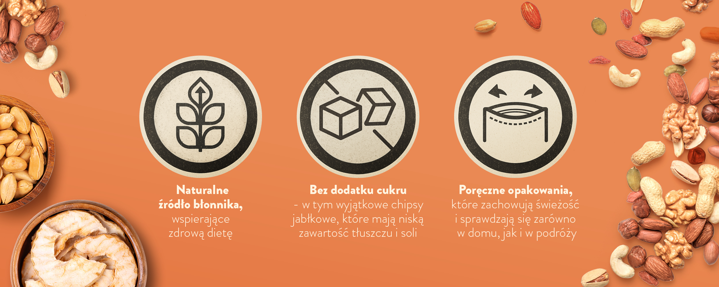 Chipsy jabłkowe to z kolei idealna alternatywa dla słodyczy, są chrupiące, naturalnie słodkie i lekkie.